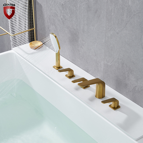 Modern 5 Buracos Deck Montado Bath Tub Mixer Escovado Ouro Latão Triplo Handle Bathtub Faucet Set